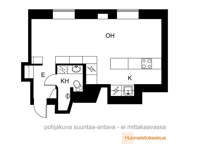 - keittiön avohyllyt, baarijakkarat 2 kpl. Lisätietoja sisältyvistä varusteista: pyykinpesukone, sälekaihtimet/rullaverhot.