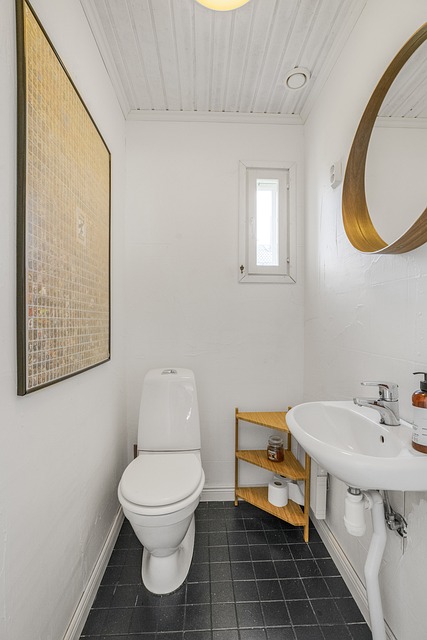 - Laattalattia, seinät maalattu ja katto paneloitu. Peili, pesuallas ja wc-istuin