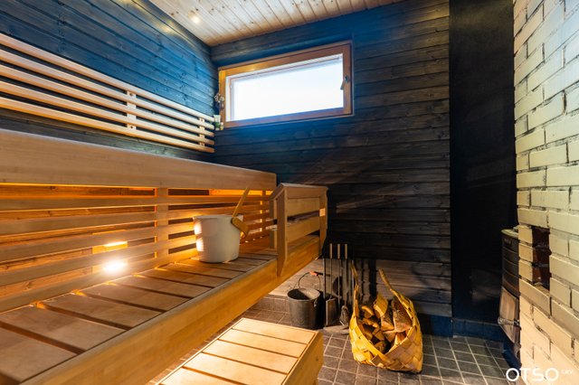 Uusittu sauna kokonaan, (pintalaatta piikattu pois, lämmitysputket uusittu).
