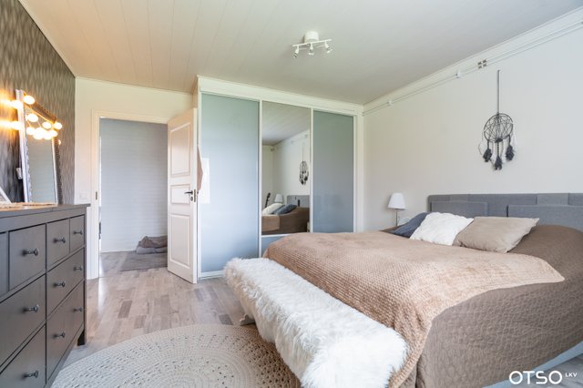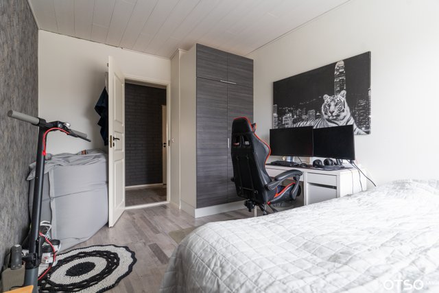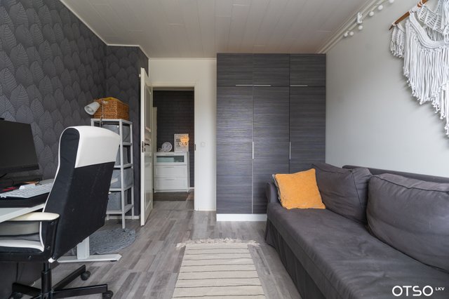 Kolmen makuuhuoneen kokonaisuus on suunniteltu arkea sujuvoittavaksi: hyvän kokoiset makuuhuoneet tarjoavat jokaiselle oman rauhan, ja avara, valoisa olohuone yhteisiin hetkiin perheen ja ystävien kanssa. Isossa keittiössä on runsaasti tilaa niin ruoanlaittoon kuin yhteisiin hetkiin. Erillinen kodinhoitohuone tuo kaivattua käytännöllisyyttä perheen arkeen, ja tyylikkäät pesutilat viimeistelevät kokonaisuuden.