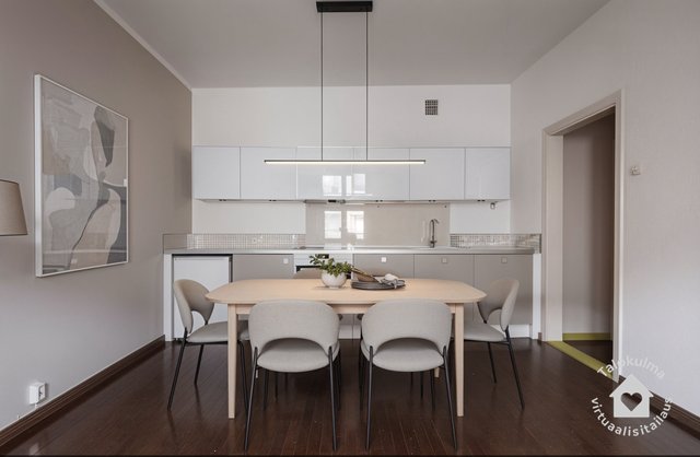 - Keittiö olohuoneen yhteydessä, keittiö siirretty olohuoneeseen remontin yhteydessä ja tehty entisestä keittiöstä makuuhuone