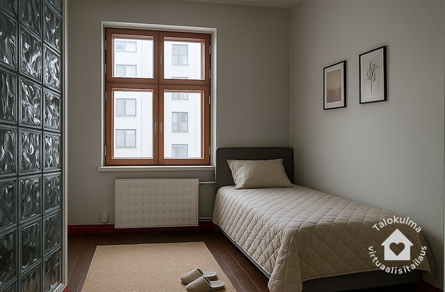 - Makuuhuone rakennettu entiseen keittiöön, makuuhuoneen yhteydessä suihkutila