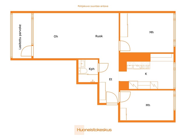 3 h, k, kph, lasitettu parveke (Yj. 3h+k+p)