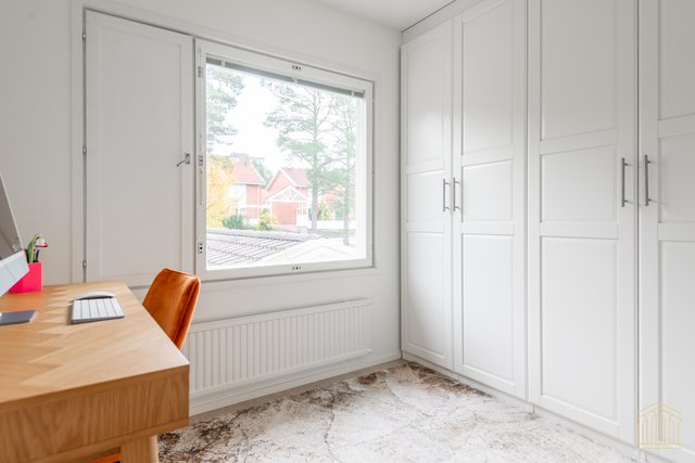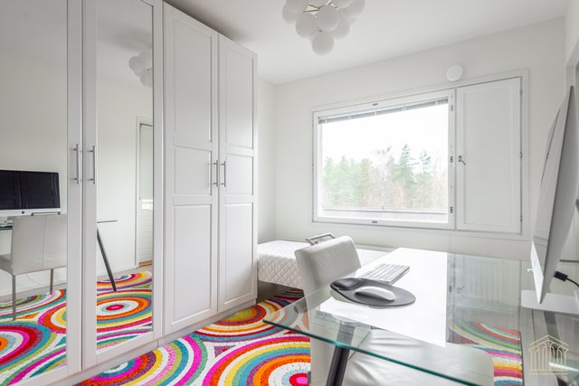 - Makuuhuone 1: Varusteet: kaapisto Lattiamateriaali: laminaatti Seinämateriaali: maali Makuuhuone 2: Varusteet: kaapisto Lattiamateriaali: laminaatti Seinämateriaali: maali Askarteluhuone: Varusteet: kaapisto Lattiamateriaali: laminaatti Seinämateriaali: maali
