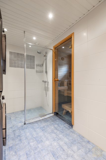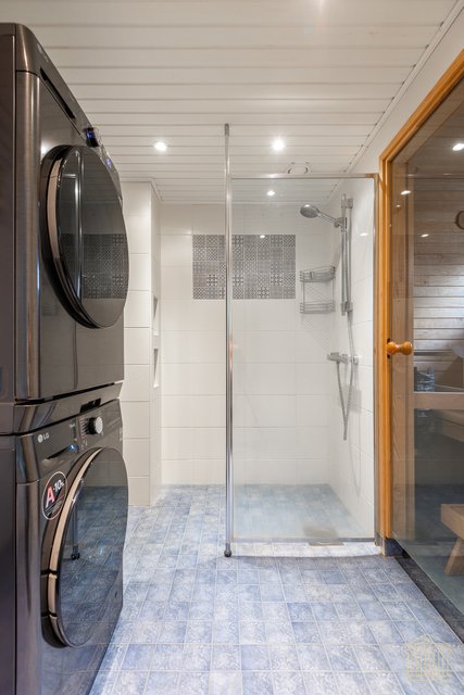 - Suihku, suihkuseinä, pesukoneliitäntä, ja lattialämmitys