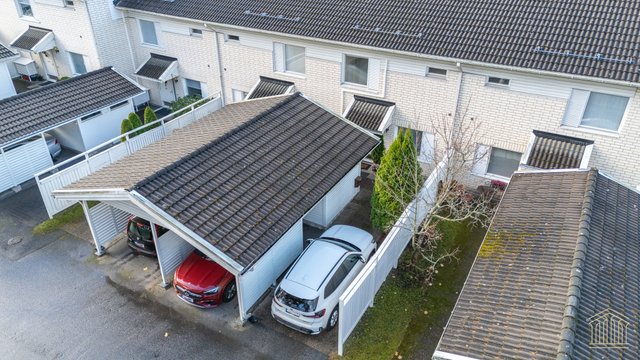 Asumismukavuutta tuo yläkerrassa oleva ilmalämpöpumppu ja helppoutta arvostavalle erittäin hyvä asia on asunnon edessä oleva oma autokatos, josta on lyhyt matka pääsisäänkäynnille. Lisäksi autokatoksen vieressä on vielä paikka toiselle autolle.