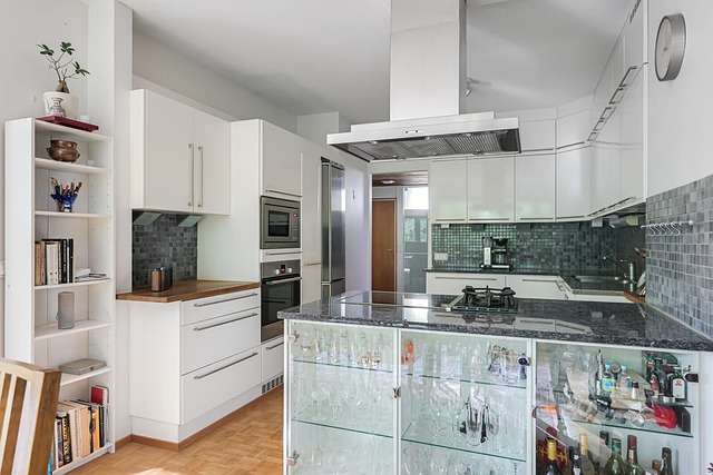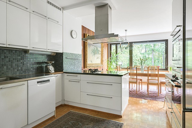 - valkoiset kaapistot, vitriinikaapisto, keittiön välitila mosaiikkilaatta