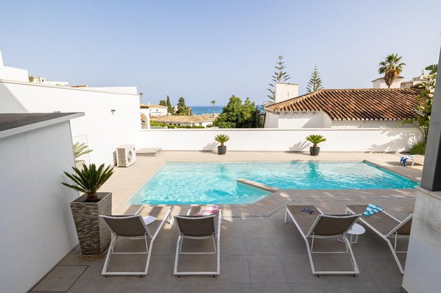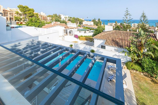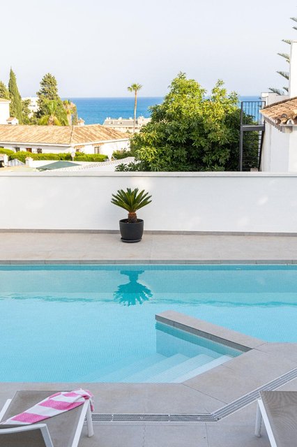 Embrace the luxury lifestyle in this well-located villa, offering the privacy of an exclusive area with the convenience of being within walking distance to the beach and Fuengirola town. Enjoy beautiful sea views and exceptional comfort in this Scandinavian-style home with four bedrooms and three bathrooms. The villa boasts a private swimming pool, a sauna, and both covered and uncovered terraces designed for different times of the day, all nestled within a superb garden perfect for outdoor summer enjoyment.