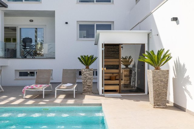 For sauna lovers as Finnish, there’s a private sauna on the terrace, allowing you to take a refreshing dip in the pool after a relaxing hot session.