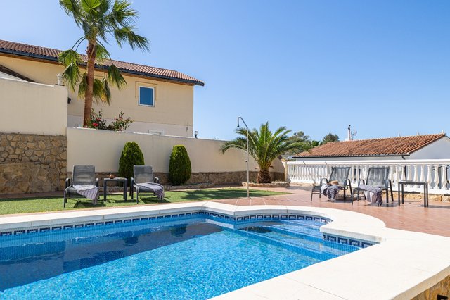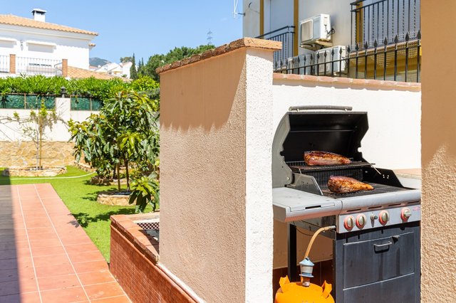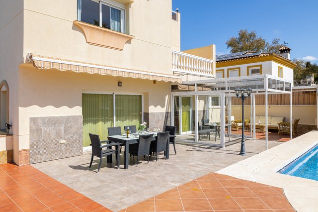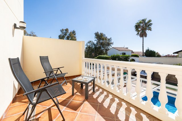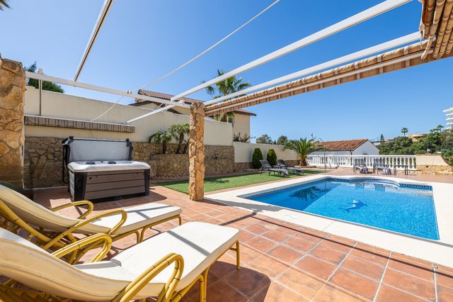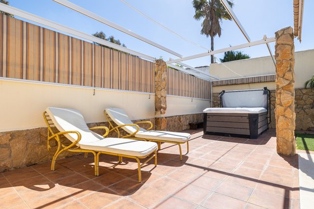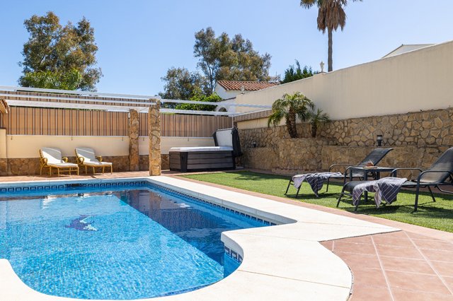 This charming 3-bedroom Andalusian-style villa is ideally located in the sought-after area of Torreblanca, featuring a private swimming pool, jacuzzi, and a beautifully decorated, expansive terrace with a barbecue area perfect for enjoying the summer outdoors.