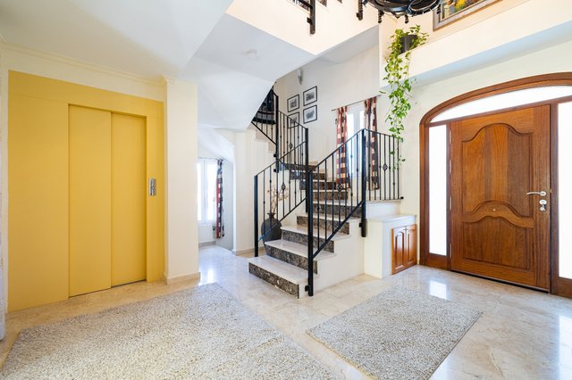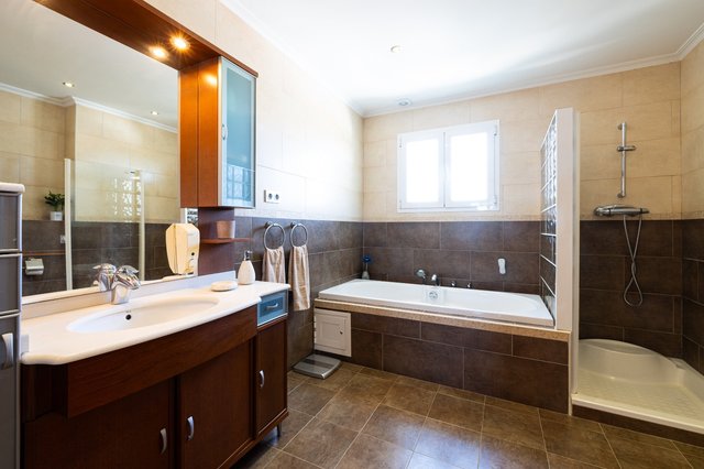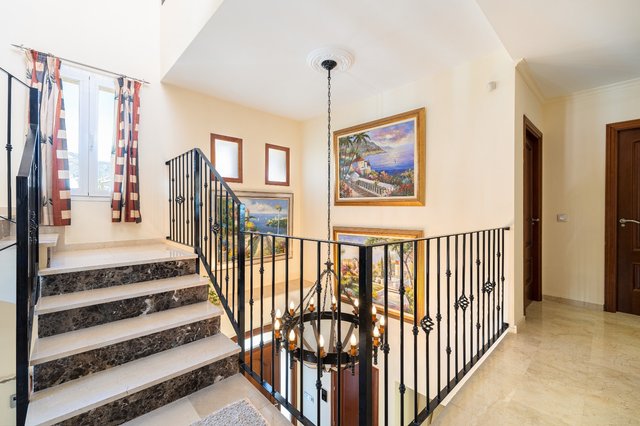 The villa features marble floors with underfloor heating throughout for added luxury and comfort.