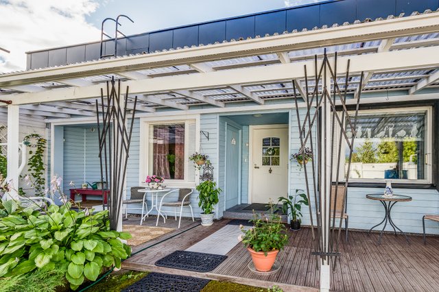 Nyt tarjolla kivalla paikalla Pikkuholmissa kokonaisuus, joka käsittää kaksi huoneistoa; toisessa huoneistossa (as. 1, noin 110 m2) 3h, k, pukuh, kph, kph/wc, s, wc, var, terassi ja toinen huoneisto (as. 2, noin 85 m2) 1h, 2työh, tupak, kph/wc, s, terassi. Sekä vielä entinen liiketila, jossa wc, kph ja autotalli sähköisellä nosto-ovella. Autotalliin on käynti myös rakennuksen sisäkautta.