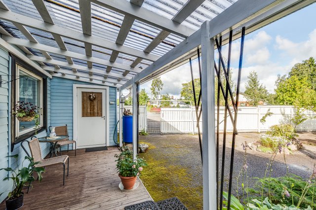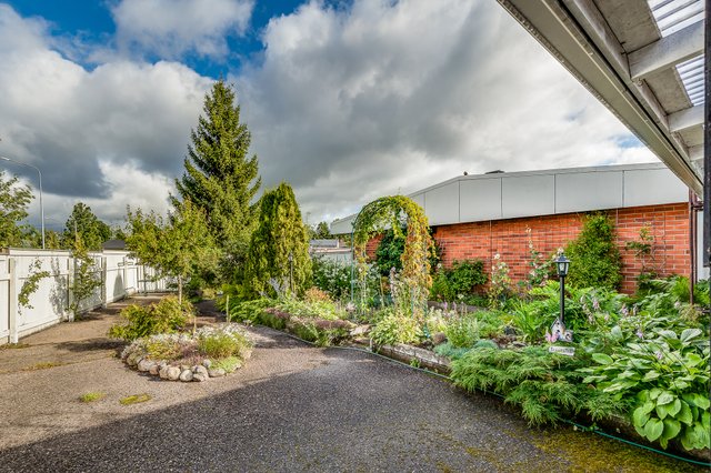 Oma tontti 868 m2:tä. Tontilla on rakennusoikeutta jäljellä vielä yli 200 k-m2. Tontin pyörätien puoleisella sivulla on havuistutuksia antamassa näkösuojaa.