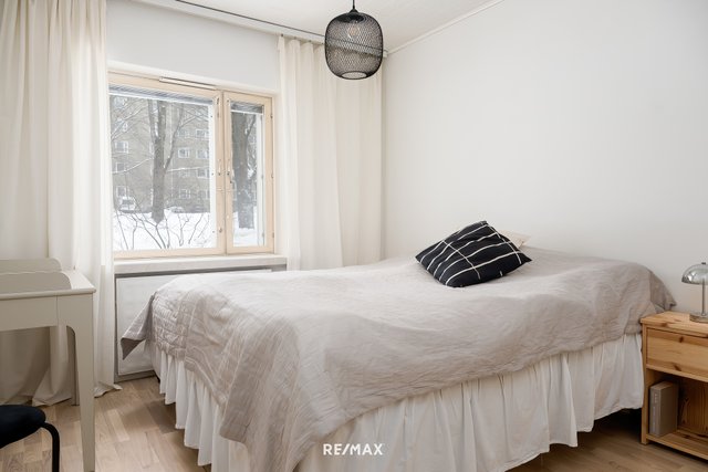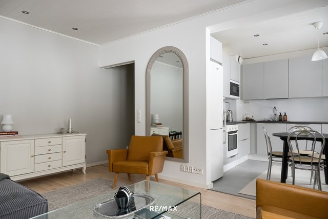 Tämä kauniisti remontoitu koti koostuu avarasta avokeittiöstä ja olohuoneesta, makuuhuoneesta, kylpyhuoneesta, eteisestä sekä lasitetusta parvekkeesta.