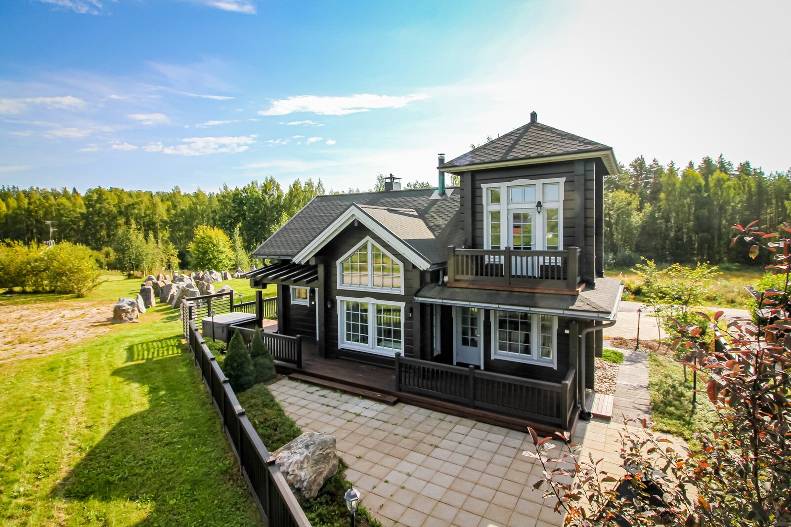 Puolitoistakerroksinen lamellihirsitalo on suunniteltu laadukkaaseen ympärivuotiseen loma-asumiseen. Perinteisellä rakennusmateriaalilla on saatu huvilaan menneen ajan tunnelma. Parvi tuo lisää tilaa ja tornihuone parvekkeineen sopii vaikka jopa ateljeeksi. Alakerran vierashuone ja yläkerran aula mahdollistavat ystävien majoittamisen.Talossa on tilava ja valoisa oleskelutila sekä hyvä saunaosasto. Saimaa ja Rauhan kylpylän palvelut ovat kävelymatkan etäisyydellä.