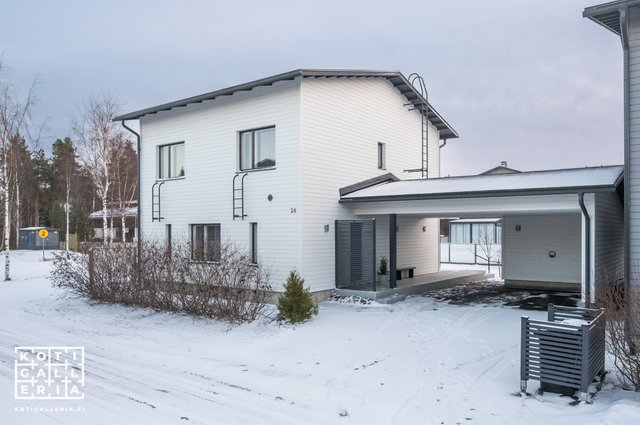 Vehreä pihapiiri puineen ja pensaineen luo viihtyisän ympäristön. Kahden auton katos, sähköauton latausasema ja tilava varasto tekevät arjesta helppoa ja toimivaa.