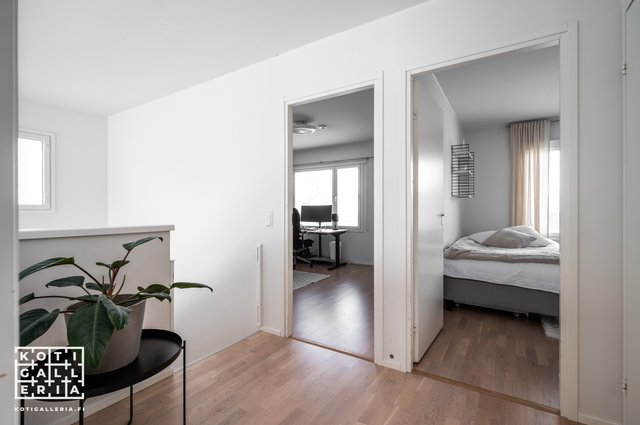 Yläkerrassa odottavat kolme tilavaa makuuhuonetta, erillinen wc sekä päämakuuhuoneen oma parveke – täydellinen paikka aamukahville. Kauniit valkolakatut tammiparketit viimeistelevät kodin harmonisen ja laadukkaan ilmeen.