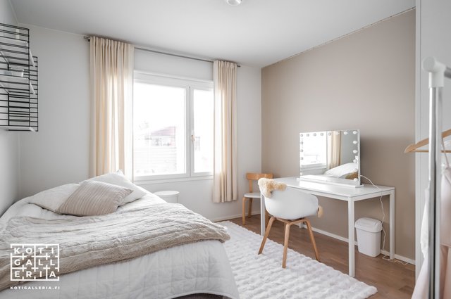 Säilytystilaa on runsaasti: eteisen korkeat peilikaapistot, makuuhuoneiden kaapistot, päämakuuhuoneen suuri säilytysratkaisu sekä portaiden alunen tekevät arjesta sujuvaa ja siistiä.