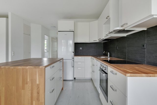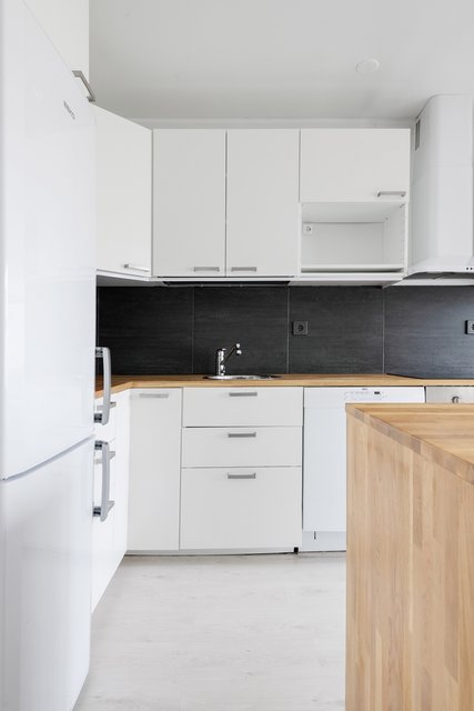 - Jääkaappipakastin, liesituuletin, astianpesukone, liesi, ja uuni