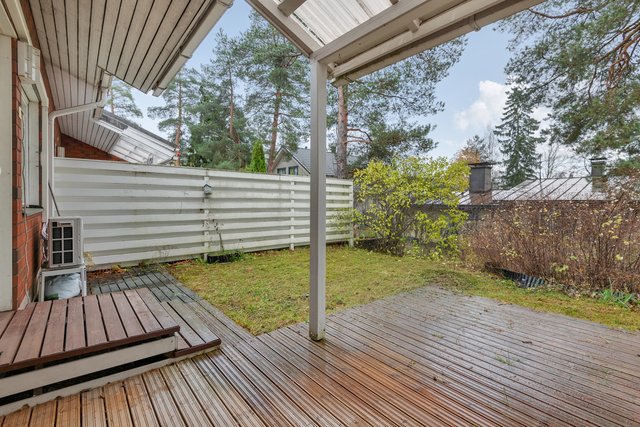 - Osittain katettu terassi takapihalla. Asunnolla käytössä huoneiston levyinen sivuilta aidattu piha-alue, jossa hyvin tilaa esim. istutuksille tai pienelle kasvimaalle.