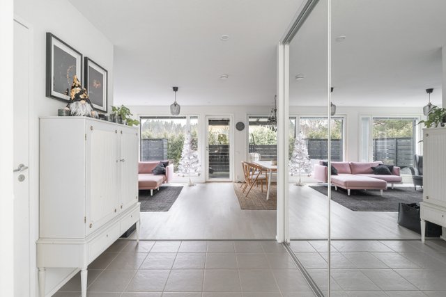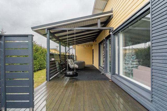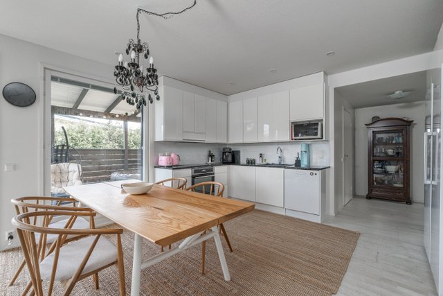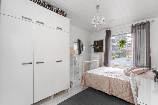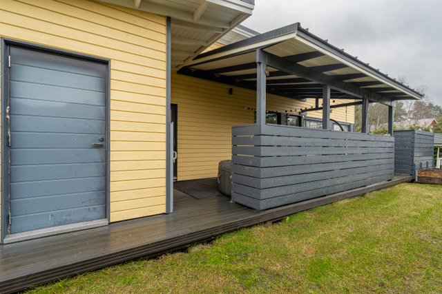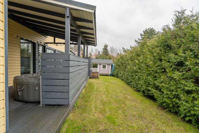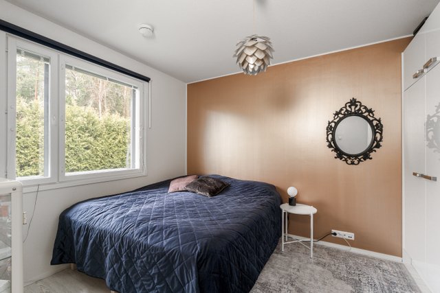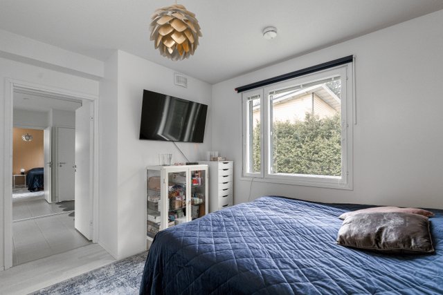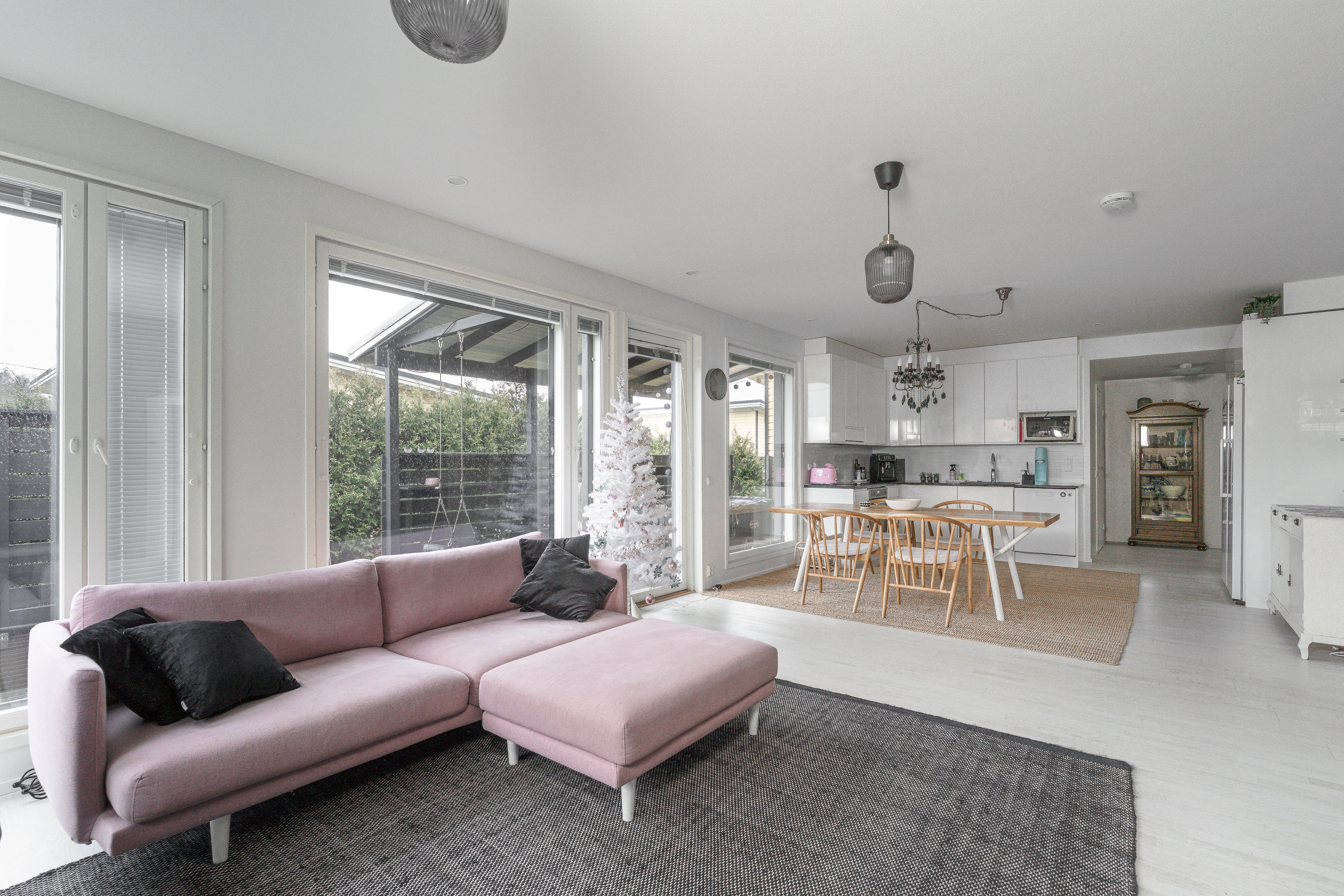 Asunto on valoisa ja tilava. Kolme makuuhuonetta ovat kaikki hyvän kokoisia ja yhdistetty keittiö/olohuoneessa on kokonaisuutena avara. Varaava takka luo sekä lämpöä, että tunnelmaa olohuoneeseen. Olohuoneen ikkunoissa on ulkopuolella moottoroidut screen-rullaverhot, jotka tuovat asumismukavuutta kesäkuumalla ja terassin katos luo suojaa niin sateelta kuin auringolta kuin myös näkösuojaa naapureilta.