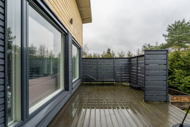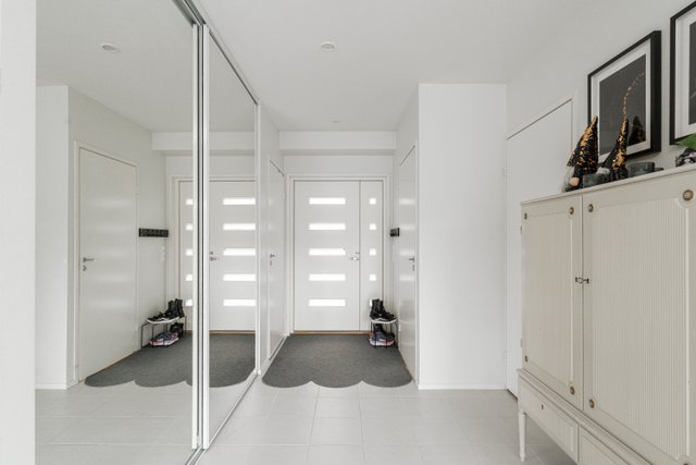 - Olohuoneen ikkunoissa on ulkopuolella moottoroidut screen-rullaverhot, jotka tuovat asumismukavuutta kesäkuumalla.
