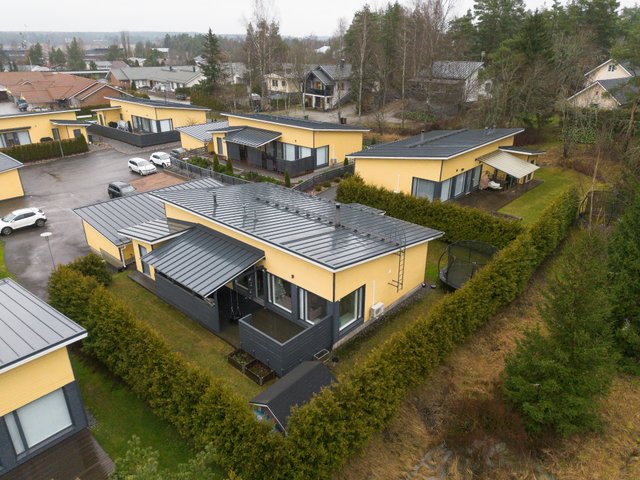 Täällä yhdistyvät omakoti- ja rivitaloasumisen parhaat puolet. Tontti on jaettu hallinnanjakosopimuksella yhdeksän erillistalon kesken ja jokainen erillistalo vastaa omasta osuudestaan. Muutamia vastuita jaetaan kuitenkin kätevämmin yhdessä, kuten jätehuolto, lumen auraus ja lasten leikkipaikka.
