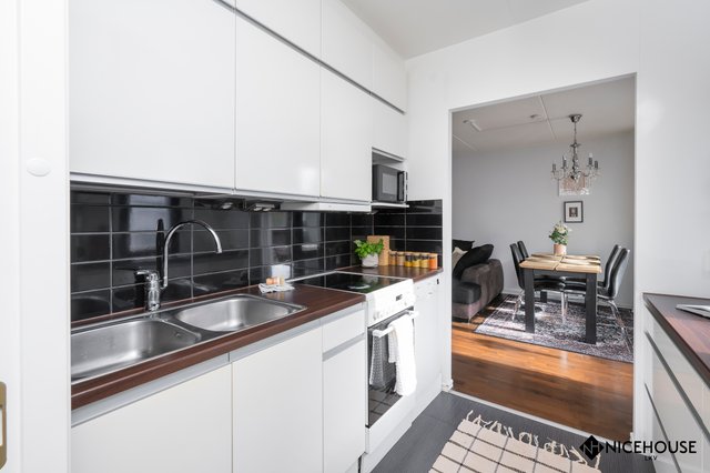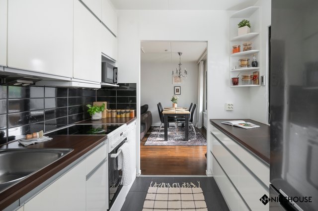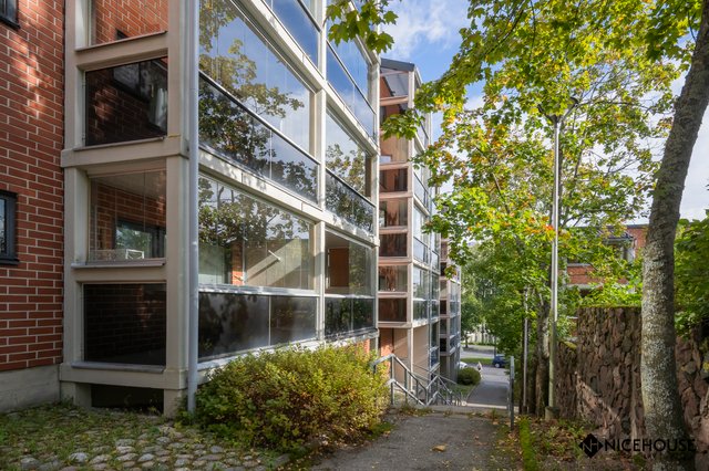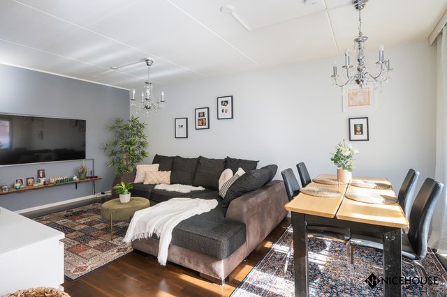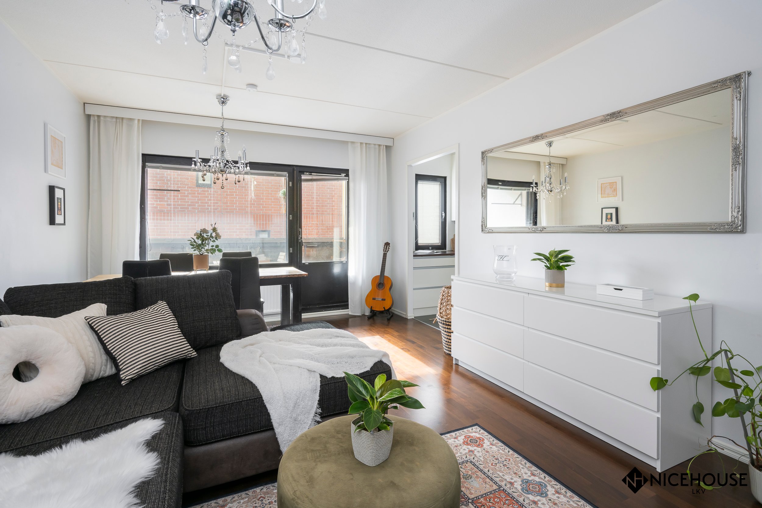 Asunnon avara olohuone on täydellinen paikka rentoutua tai viettää aikaa ystävien kanssa. Olohuoneesta on suora pääsy lasitetulle parvekkeelle, josta avautuvat näkymät pihalle ja kadulle. Keittokomero on käytännöllinen ja vaaleasävyinen, ja kylpyhuone on hiljattain remontoitu vastaamaan nykypäivän vaatimuksia.