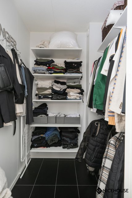- Eteisessä on säilytystilaa peililiukuovikaapistossa. Loistava säilytystila on iso vaatehuone.