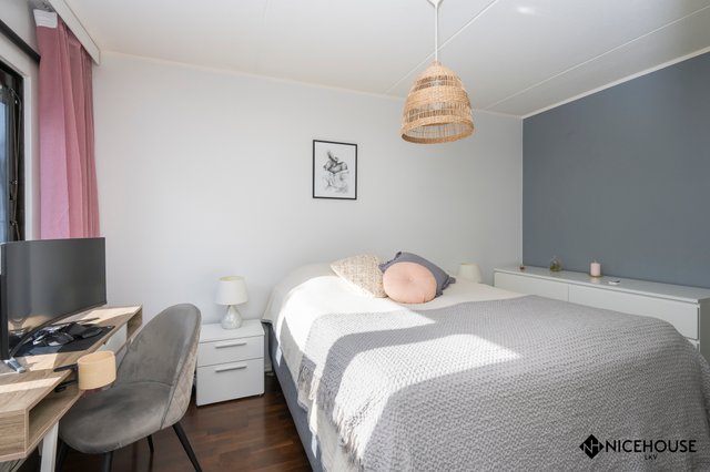 - Tilava makuuhuone on omassa rauhassaan erillään oleskelutilasta. Tilavassa makuuhuoneessa on tilaa työpisteelle.