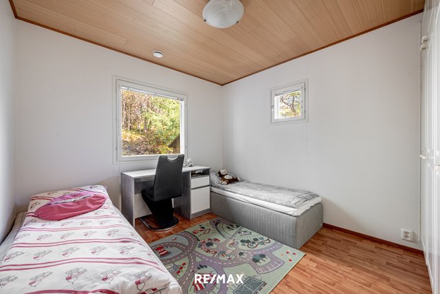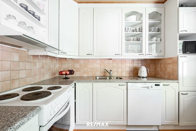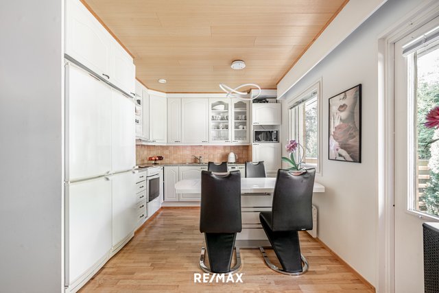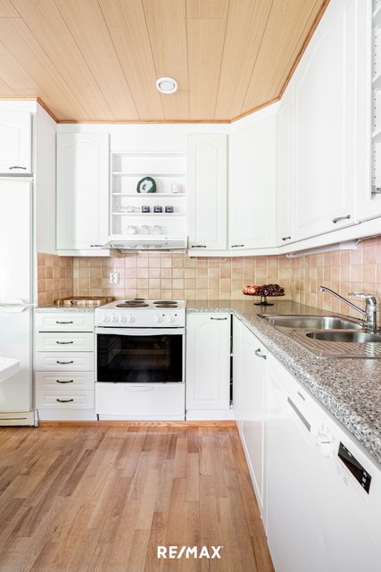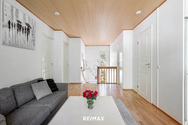 Kodin pohjaratkaisu on toimiva: kolme makuuhuonetta, joista suurimmassa on oma vaatehuone, sekä kaksi erillistä wc:tä tekevät arjesta sujuvaa ja käytännöllistä. Tilava olohuone parkettilattioineen luo kodikkaan tunnelman, ja keittiö on varusteltu kaikilla tarvittavilla kodinkoneilla.