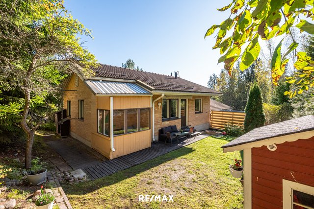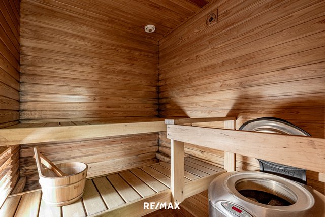 Sauna ja kylpyhuone tarjoavat rentouttavat puitteet päivän päätteeksi. Säilytystilaa on runsaasti niin vaatehuoneessa kuin ulkovarastossakin, mikä lisää asumisen helppoutta