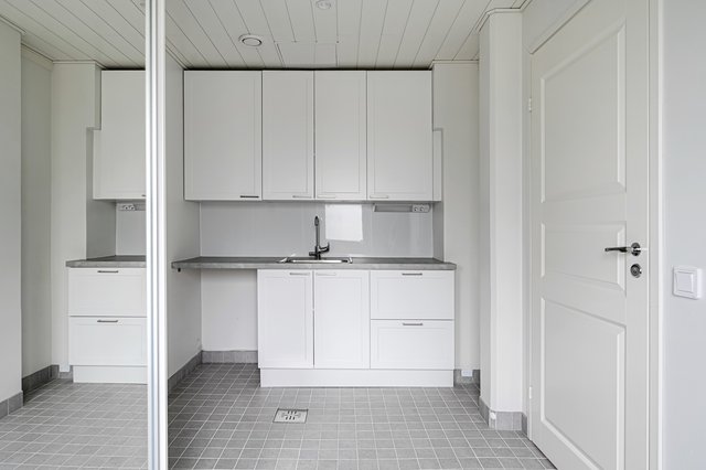 - Varustus: pesukoneliitäntä, varaus kuivausrummulle, pesuallas, lattiakaivo, isot kaapistot, peililiukuovikaapisto. Lattia: laatta. Seinät: maalattu.