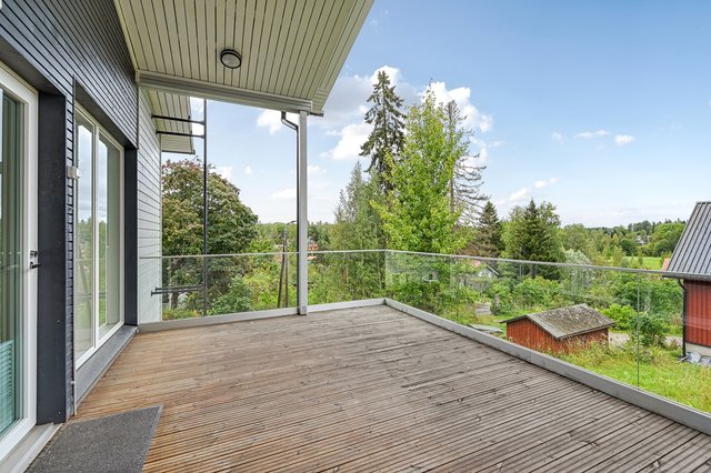 Ulkoilmaelämää varten talossa on osittain katettu suuri terassi, joka kutsuu nauttimaan kesäpäivistä ja illanistujaisista. Oma piha on helppohoitoinen ja yhteinen piha-alue tarjoaa lisätilaa lasten leikeille, sekä perheen yhteisille hetkille.