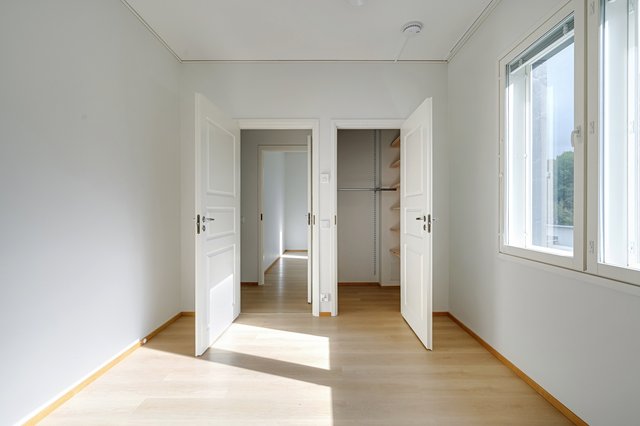 - Varaston ja vaatehuoneen hyllyköt, 2 makuuhuoneessa olevat rullaverhot, ilmalämpöpumppu.