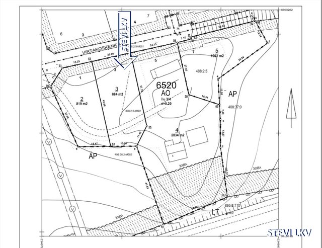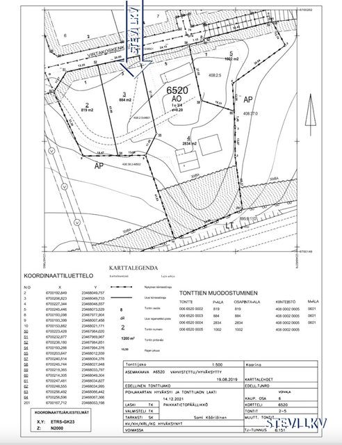 Rakennusoikeus 176,8m2, tontin koko 884m2 (tehokkuusluku 0,2).