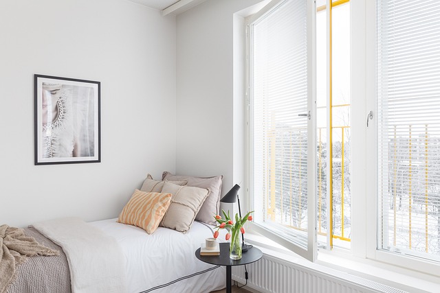 - Korkeat, avattavat ikkunat, joiden takana on metallinen pinnakaide, näkymä länteen.