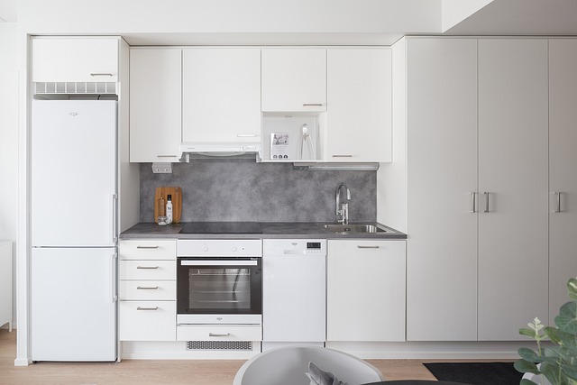 - Kaappien ovet ovat valkoisia, puusyykuvioisia mikrolaminaattiovia. Työtasot ovat laminaattipintaisia. Keittiöissä on kalusteuuni ja 2 tai 4 -osainen induktiotaso, liesikupu, jää-/pakastinkaappi astianpesukone sekä varaus mikroaaltouunille.