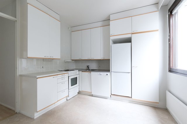 - Jääkaappipakastin, liesi, ja astianpesukone