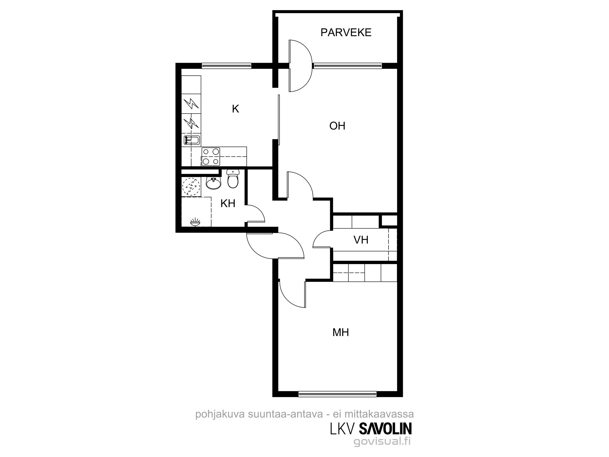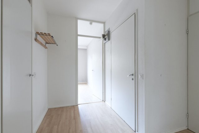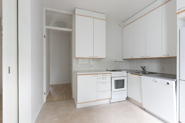 Asunnossa on toimiva pohjaratkaisu, jossa on tilava olohuone ja makuuhuone. Keittiö on varusteltu asianmukaisesti, ja sieltä löytyy jääkaappipakastin, liesi ja astianpesukone. Kylpyhuoneessa on kaikki tarpeellinen, kuten pesukoneliitäntä, "rättipatteri" ja bideesuihku.
