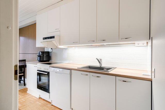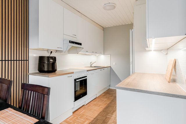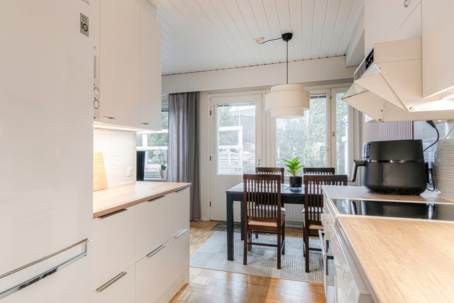 - Liesituuletin (alkuperäinen ), astianpesukone (uusittu 2024), liesi (keraaminen, uusittu 2024), ja jääkaappipakastin (uusittu 2024)