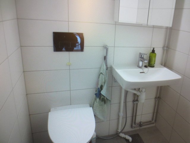 - Suihku, pesuallas, wc-istuin, peilikaappi, allaslaatikosto, ja bidee-suihku