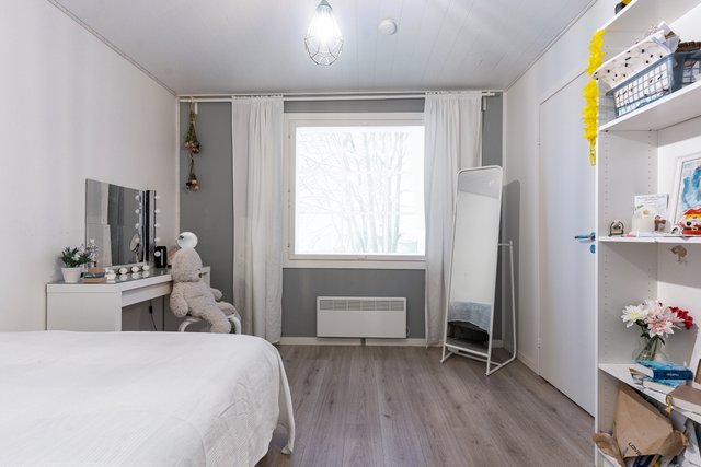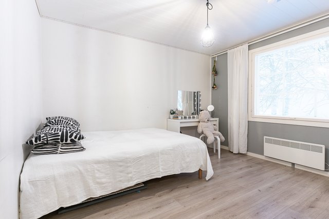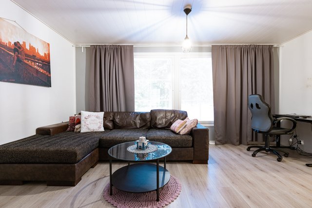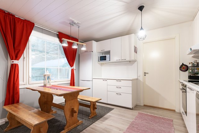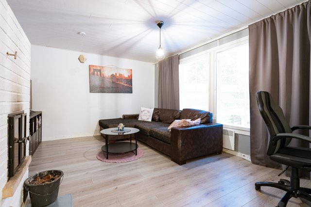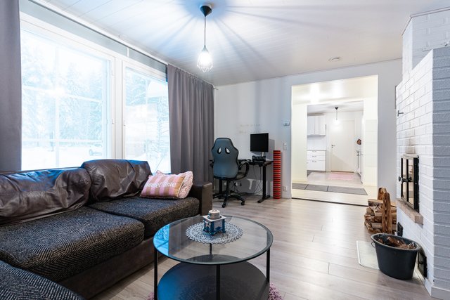 Olohuoneessa on varaava takka, joka tuo lämpöä ja tunnelmaa talvi-iltoihin. Keittiö on tilava ja hyvin varusteltu, mikä tekee ruoanlaitosta vaivatonta. Kolme makuuhuonetta tarjoavat mukavasti tilaa perheenjäsenille, ja vuonna 2022 remontoidut kylpyhuone, sauna ja kodinhoitohuone vastaavat modernin asumisen tarpeisiin. Erillinen kodinhoitohuone helpottaa arjen askareita, ja sieltä on oma uloskäynti.