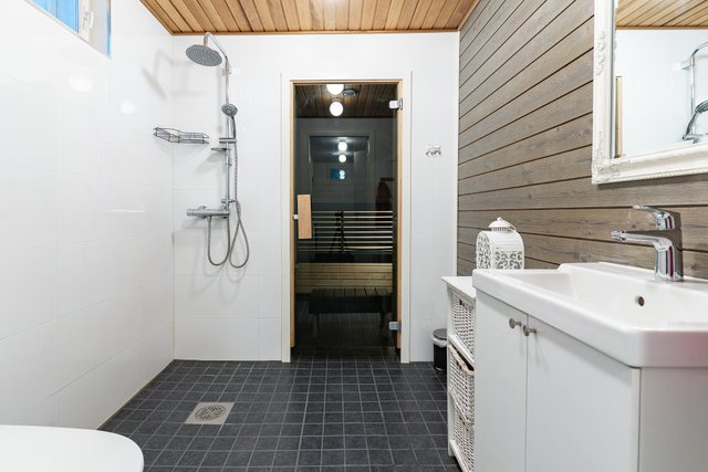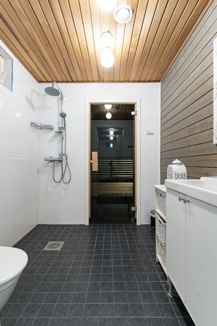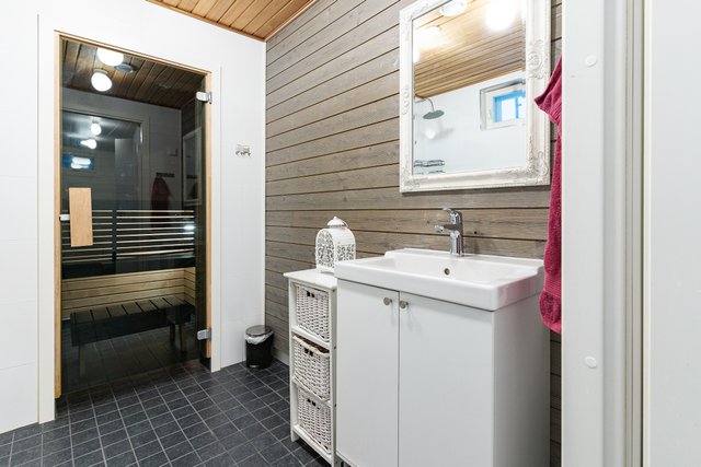 - WC-istuin, suihku, lattialämmitys, peili, ja allaskaappi