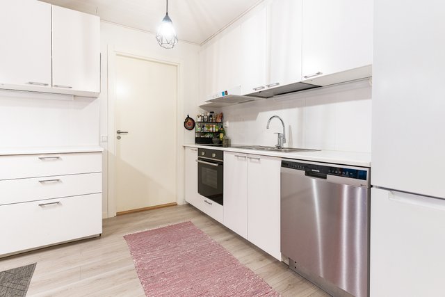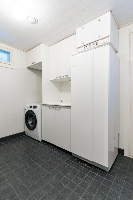 - Lattialämmitys, pöytätaso, tila pesutornille, ja pyykkikaapit
