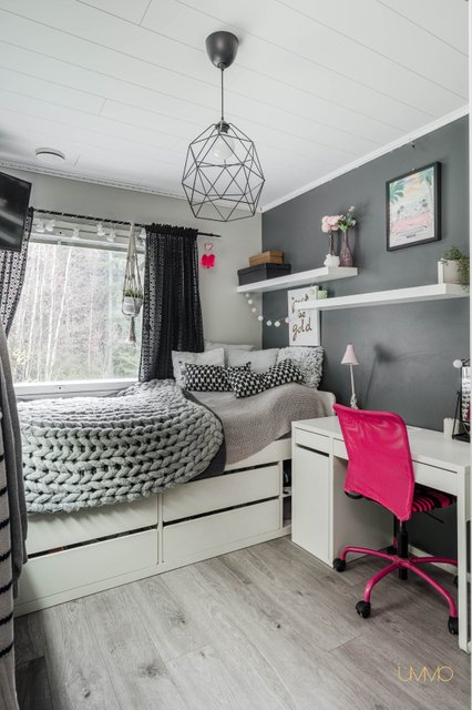 Talon sydän on avokeittiön ja olohuoneen muodostama yhtenäinen tila, jossa suuret ikkunat tuovat runsaasti luonnonvaloa sisään. Takkahuone luo viihtyisän ilmapiirin erityisesti talvi-iltoina. Makuuhuoneita on kolme, joten tilaa riittää niin perheelle kuin vieraillekin.