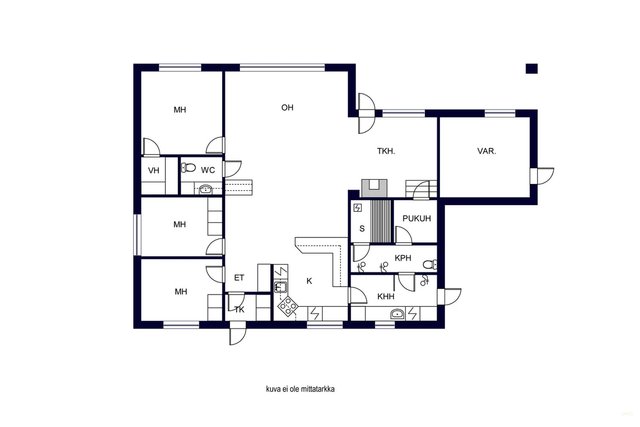 - Pinta-ala ei ole tarkistusmitattu ja todellinen pinta-ala voi olla suurempi tai pienempi, kuin ilmoitettu. Pinta-alatiedot perustuvat rakennuspiirustuksiin ja rakennuslupakuviin.