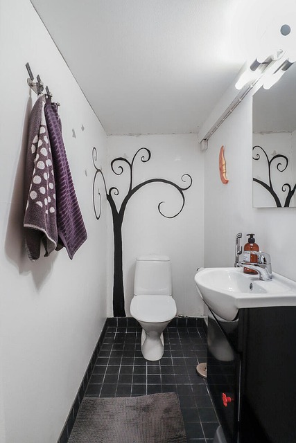 - 1 asuinkerroksessa pesuhuone: lattiapinnat: laatta, seinäpinnat: laatta: kauppaan kuuluva varustus: wc-istuin, peilikaappi, allakaappi, lattialämmitys