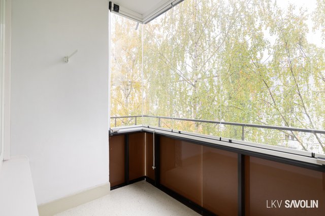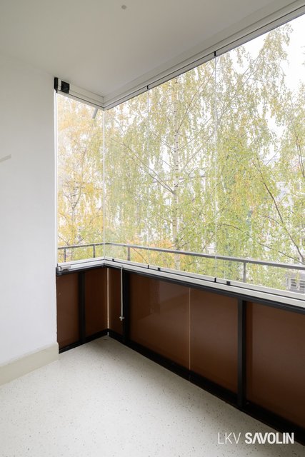 - Olohuoneesta on kulku lasitetulle parvekkeelle.
