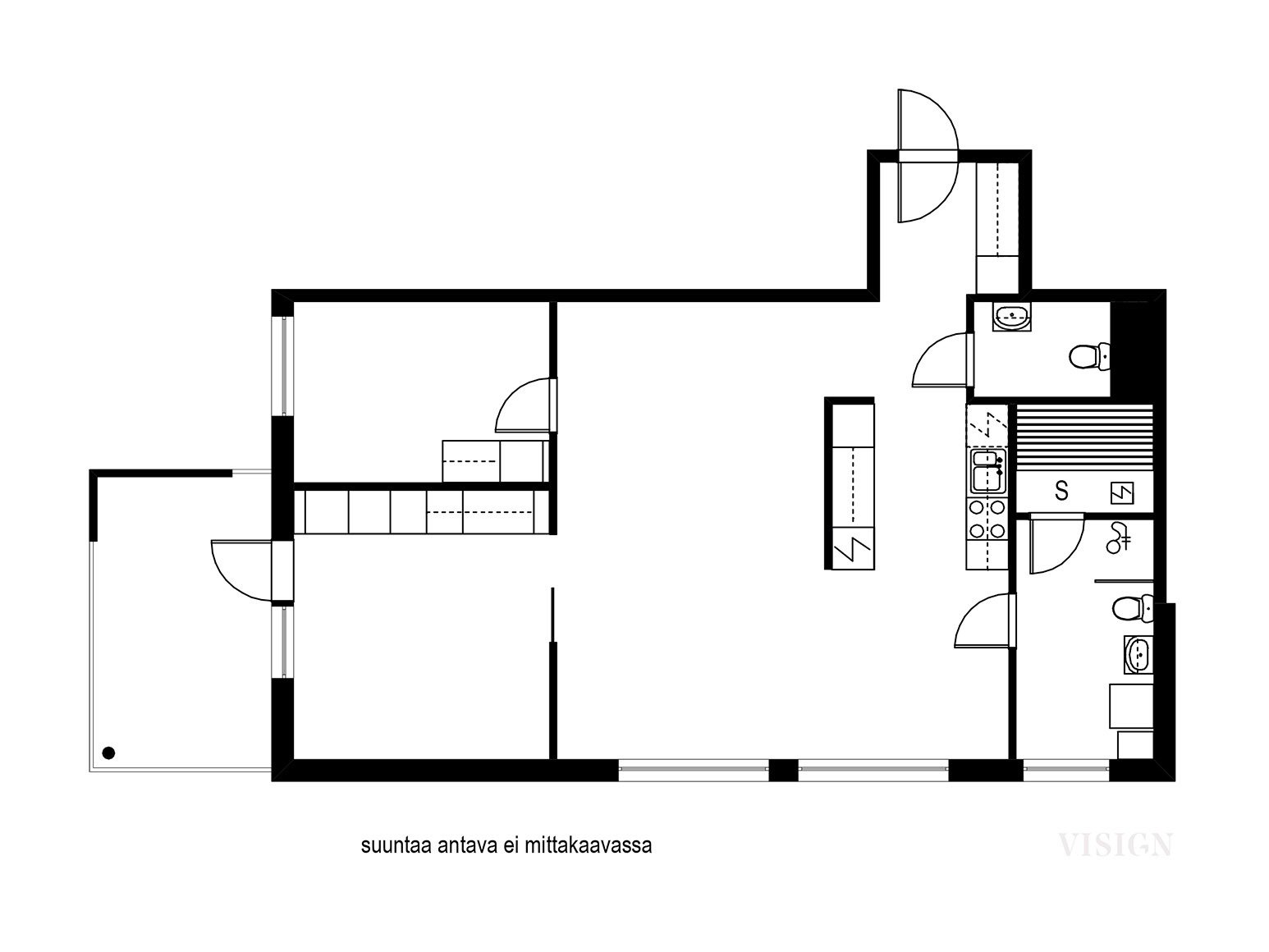 - Lisätietoja sisältyvistä varusteista: kaapistot, kiinteät valaisimet, verhotangot